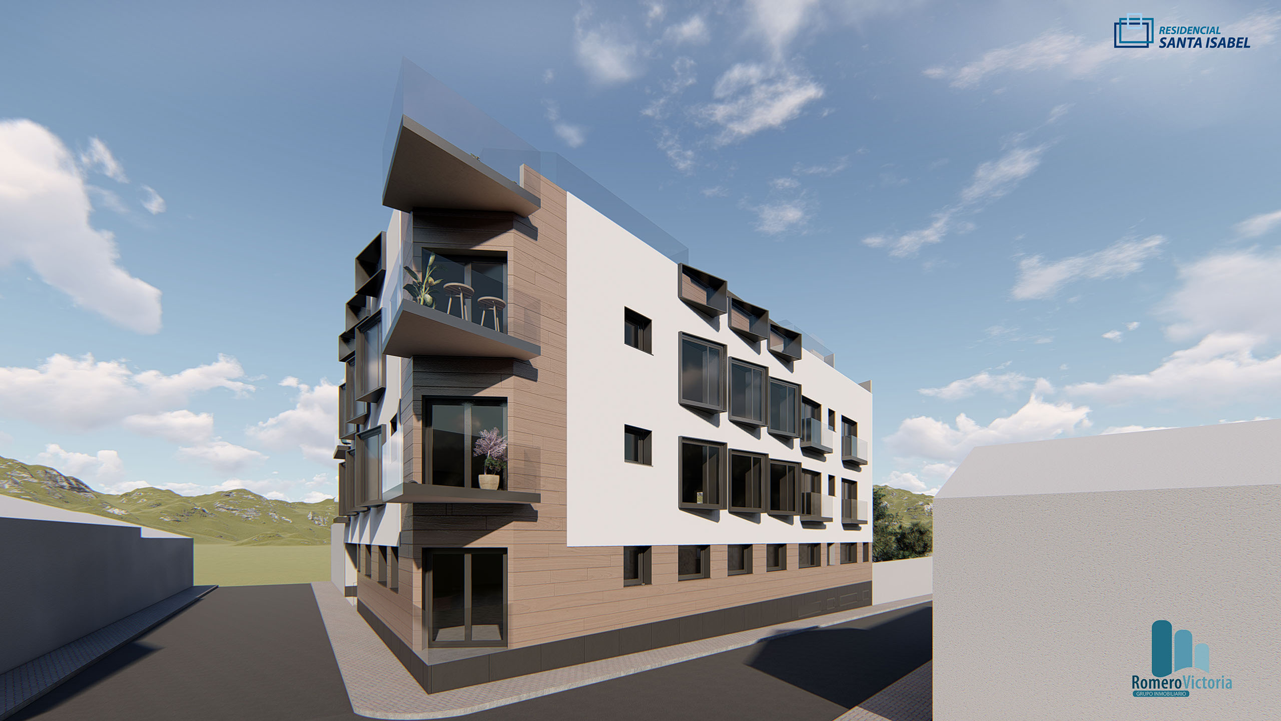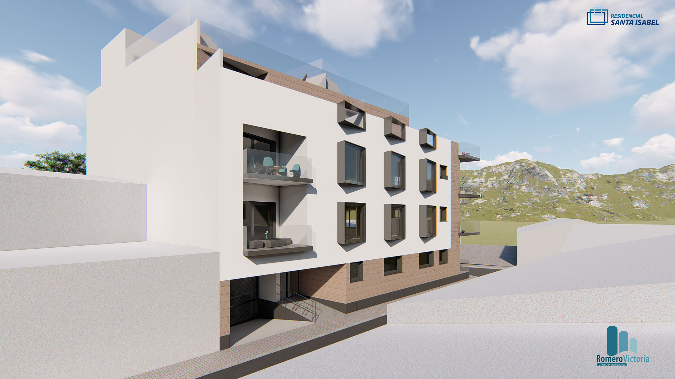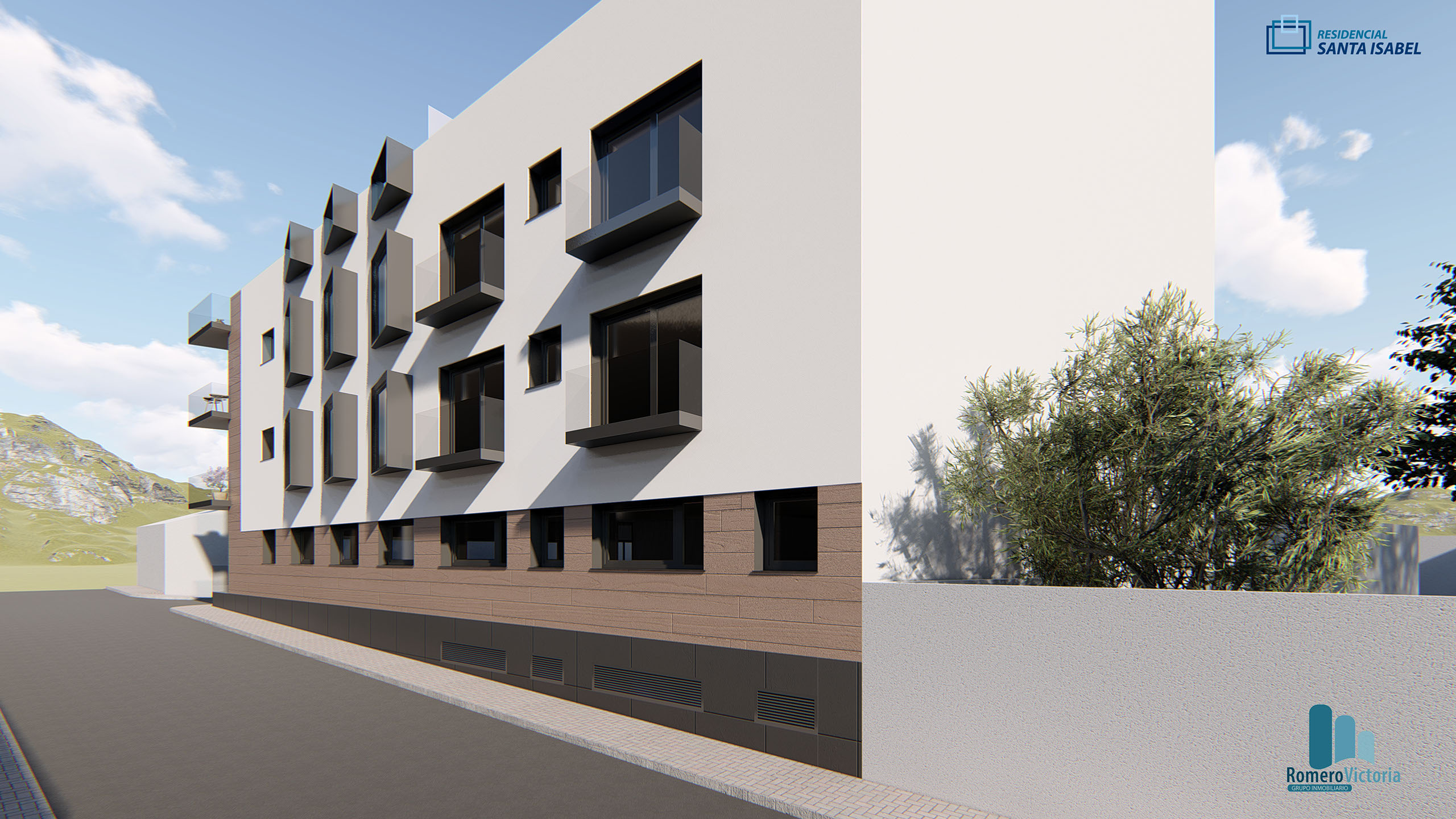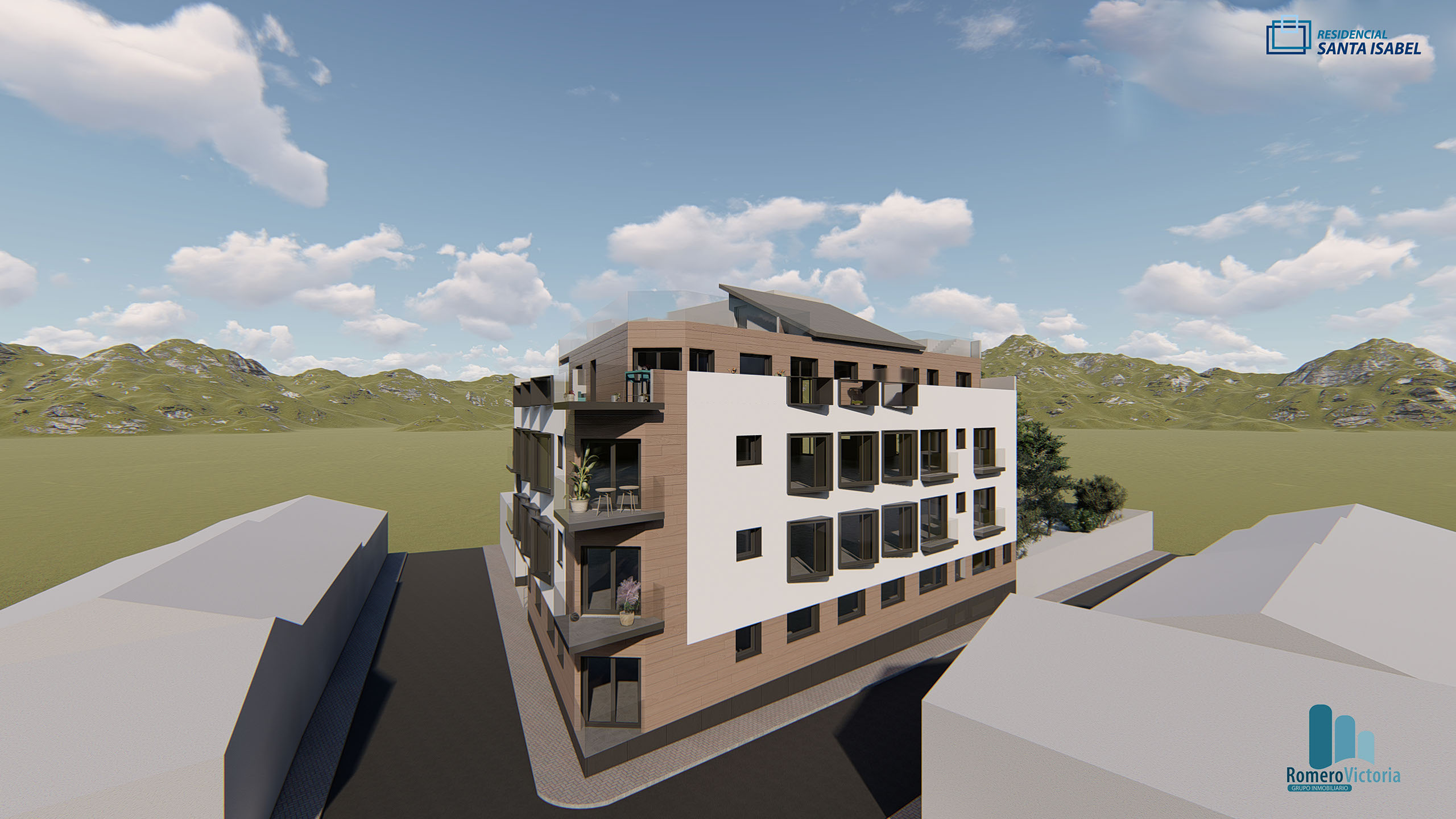 Edificio “Santa Isabel” es un Proyecto innovador de cuidado diseño, se trata de una edificación de 5 alturas, sin locales comerciales, situándose la planta baja a bastante altura de la cota de acerado y terminando con los Áticos – Solárium en la planta con zona de piscina individual . En el semisótano y sótano proyectamos 16 garajes de fácil accesibilidad con calles de maniobra bastante anchas.