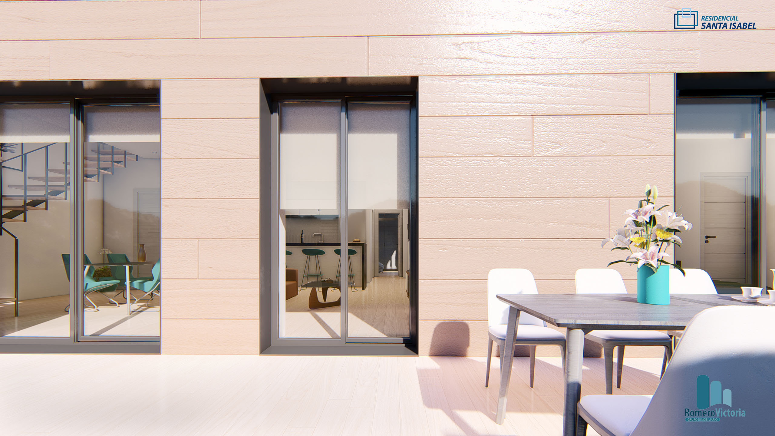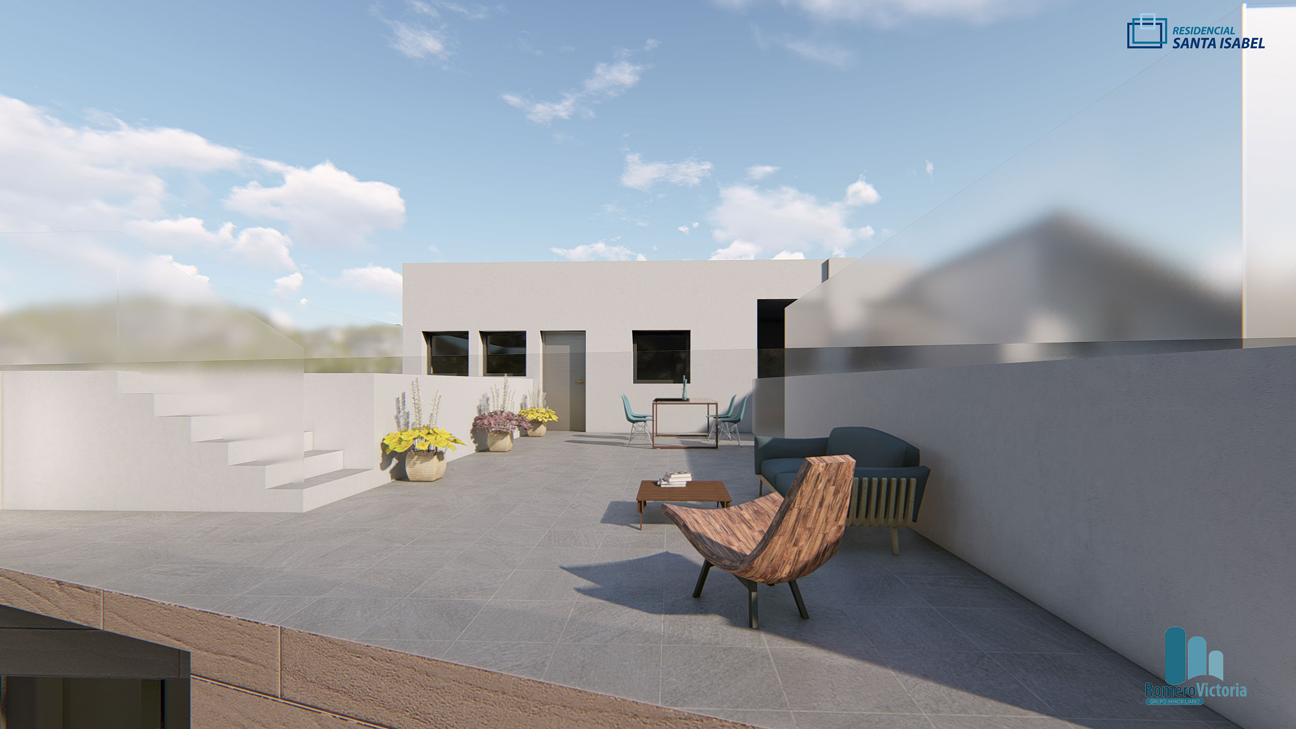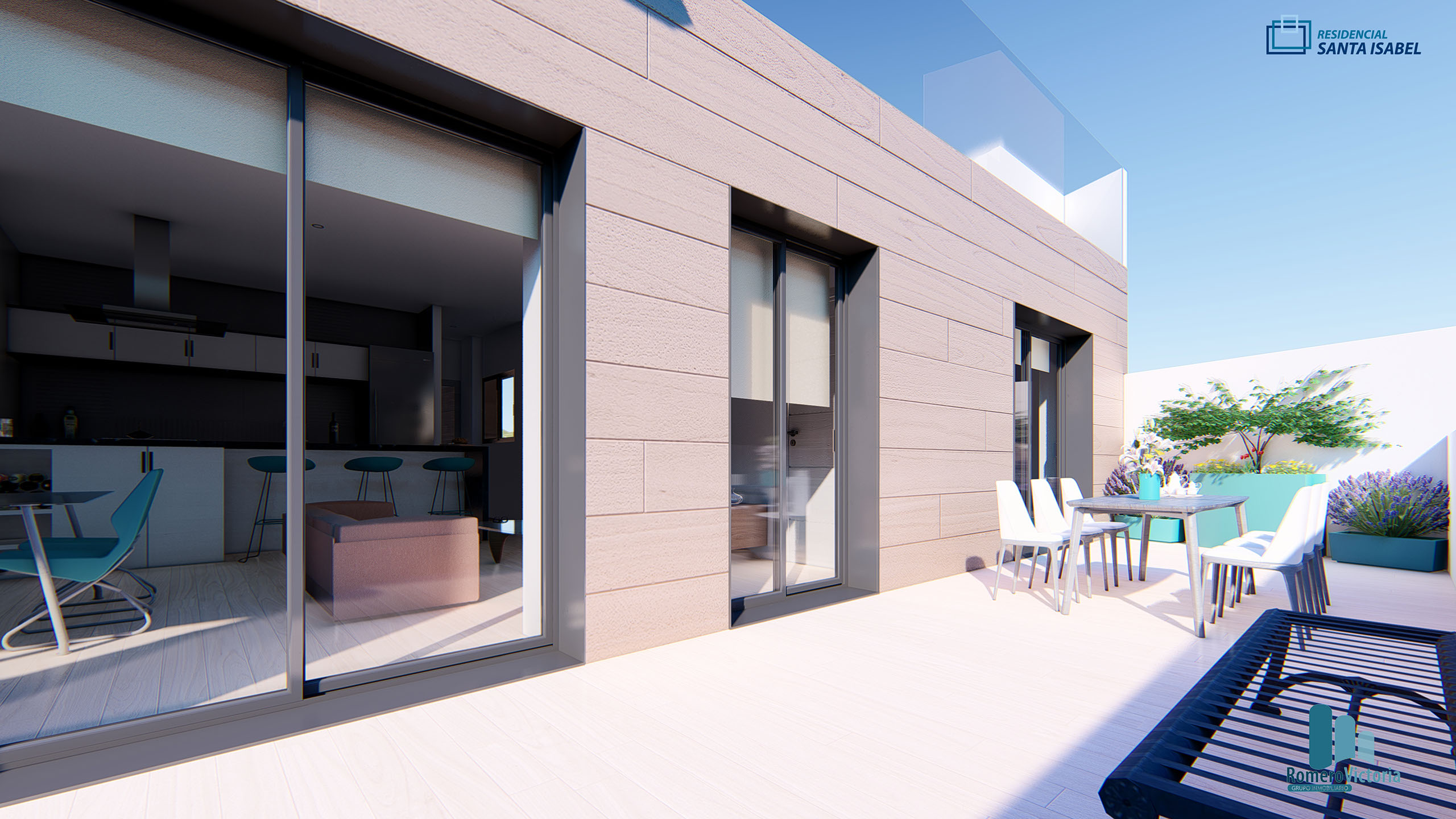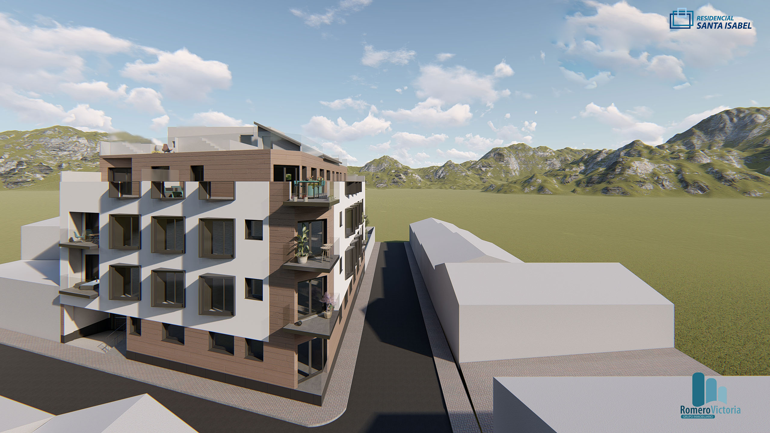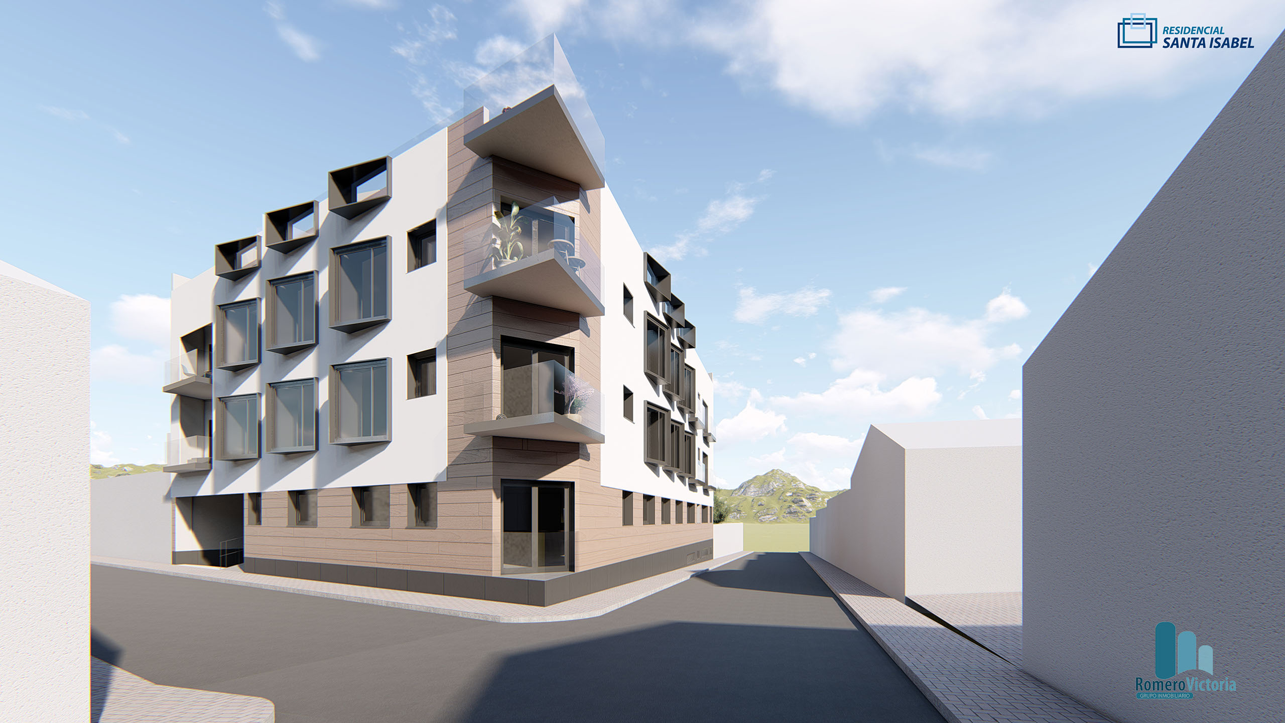 Edificio “Santa Isabel” es un Proyecto innovador de cuidado diseño, se trata de una edificación de 5 alturas, sin locales comerciales, situándose la planta baja a bastante altura de la cota de acerado y terminando con los Áticos – Solárium en la planta con zona de piscina individual . En el semisótano y sótano proyectamos 16 garajes de fácil accesibilidad con calles de maniobra bastante anchas.