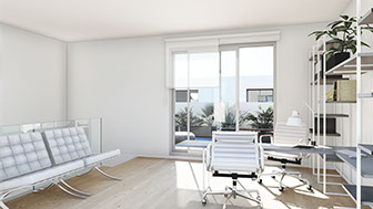 Persianas motorizadas de balconeras grandes según dirección facultativa. Doble acristalamiento termo acústico con cámara de aire deshidratada en ventanas, excepto en planta baja y semisótano,