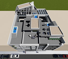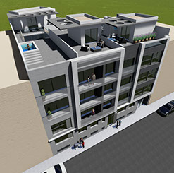 Se trata de un Edificio de Obra Nueva proyectado en los pocos Suelos de la Capital. Distribuido en dos plantas de Garajes y 5 de Viviendas